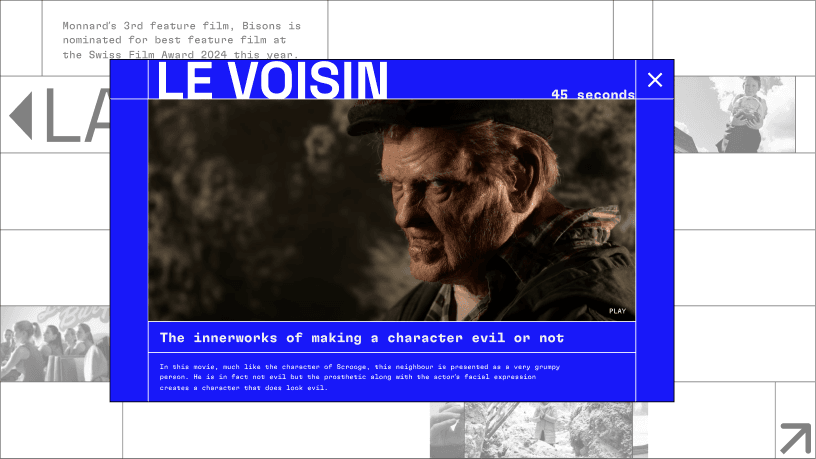 The process pop-ups dissect each creator's approach. For the people directing, and writing, we look at their storytelling methods and vision. For Pierre Monnard an interview is appropriate because he is established in the film industry but it can vary.