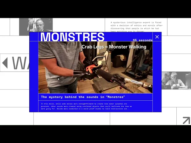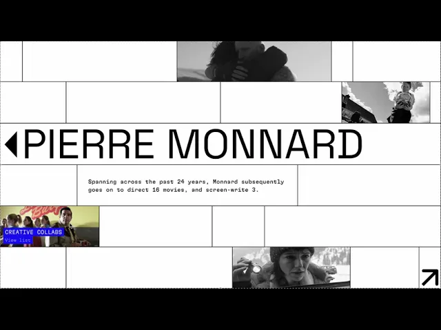 I extend the tone by including punchy one-liners in our full bleed videos such as “A Mastermind at faking injuries” or “24 years, 16 directed movies” to highlight striking career facts on the creators and amplify their presence for future collaboration.